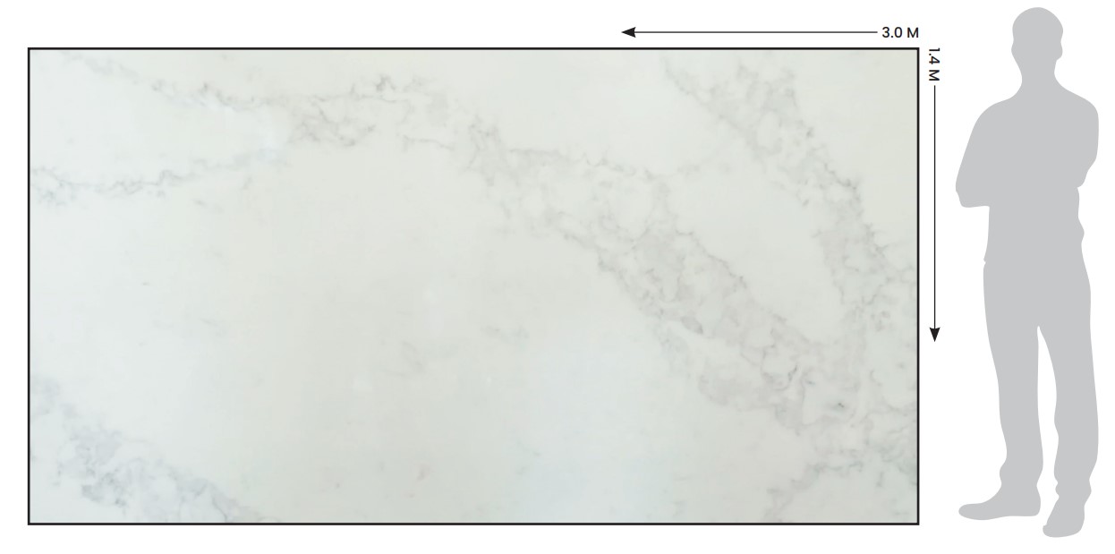 Calacatta Canyon is a soft, restrained marble-effect finish — a delicate white base with gentle pale grey veining drifting across the surface. The overall feel is calm and light, making it a good choice for kitchens where you want a hint of movement and character without anything too dramatic.